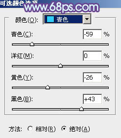 4、创建可选颜色调整图层,对红、青、白、黑进行调整,参数设置如图6 - 9,效果如图10。这一步减少红色及青色浓度。