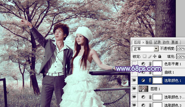 Photoshop给树林婚片加上梦幻的红紫色(3)