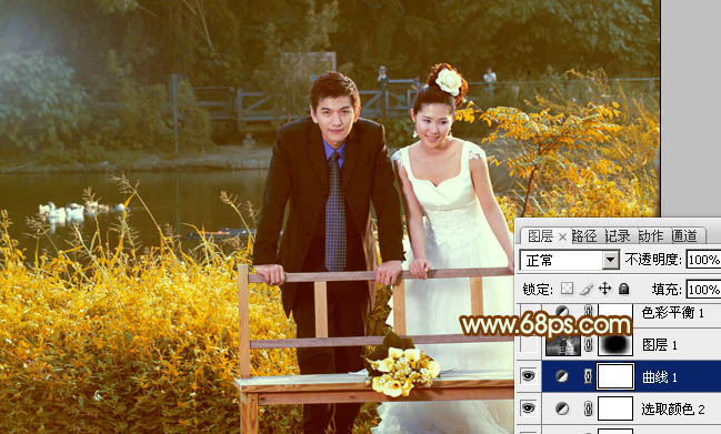 Photoshop给河边的情侣增加甜美的橙褐色(4)