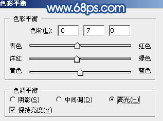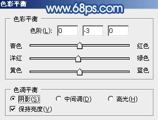 5、创建色彩平衡调整图层,对阴影,高光进行调整,参数设置如图11,12,确定后把图层不透明度改为:50%,效果如图13。这一步加强图片暗部及高光部分的蓝色。