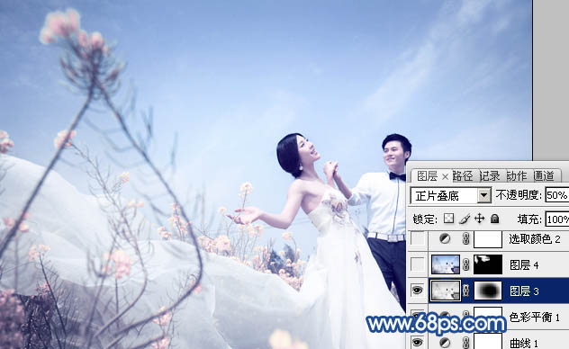 Photoshop打造甜美的淡蓝色原野婚片(5)