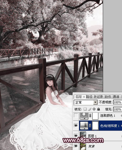 Photoshop调出河边美女婚片梦幻的紫红色(2)