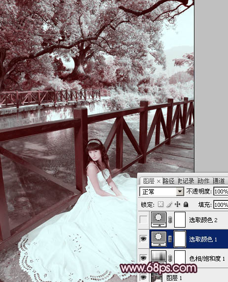 Photoshop调出河边美女婚片梦幻的紫红色(3)