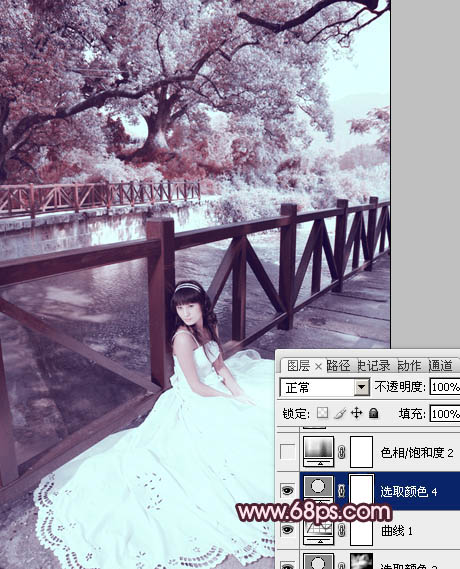 Photoshop调出河边美女婚片梦幻的紫红色(7)