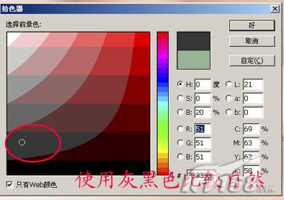 第一步:新建图层命名为“眼线1”,在拾色器中将颜色选为灰黑色,在生活在一般的眼线是黑色的,但如果将其用到照片上会显得不自然,所以灰黑色更好一点,如图9所示:
