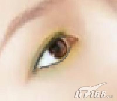 第二步:将眼睛放大到一定倍数,仔细的用画笔工具按着眼睛的边沿上下各画一条线,最好分二次画,上面一次,下面一次,如图11所示: