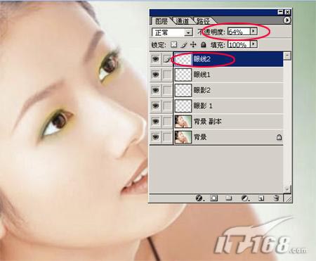 接下来是画另一只眼睛的眼线,操作方法是一样的,只是这次的透明度可以稍稍调大一点,明显一点,如图13所示: