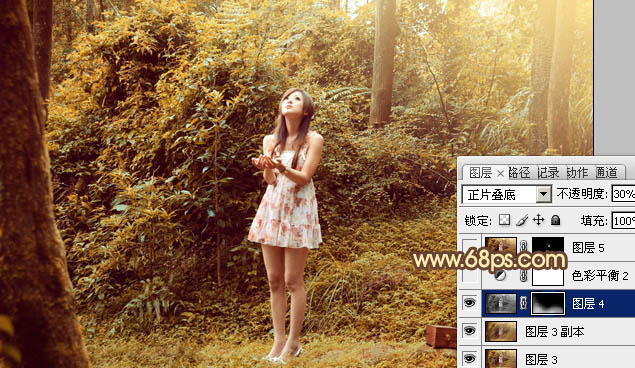 Photoshop调出树林美女图片梦幻的橙褐色(7)