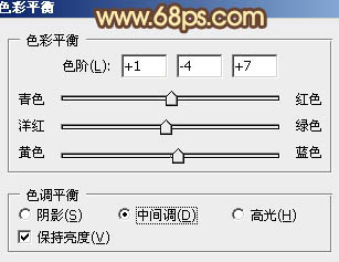 10、创建色彩平衡调整图层,对阴影,中间调进行调整,参数设置如图23,24,确定后把图层不透明度改为:30%,效果如图25。这一步微调暗部颜色。