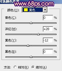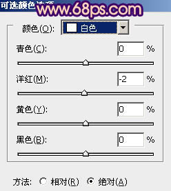 9、创建可选颜色调整图层,对红、黄、蓝、白进行调整,参数设置如图21 - 24,效果如图25。这一步把高光及人物肤色转为橙黄色。