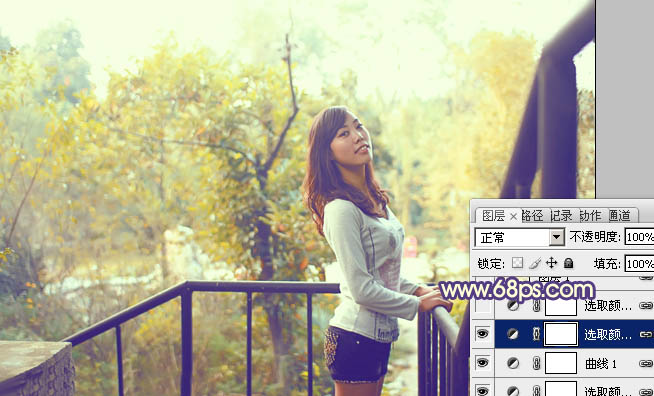 Photoshop给外景人物图片增加柔和的蓝黄阳光色(4)