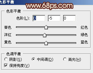 6、创建色彩平衡调整图层,对阴影、中间调、高光进行调整,参数设置如图11 - 13,效果如图14。这一步增加高光部分的淡黄色。
