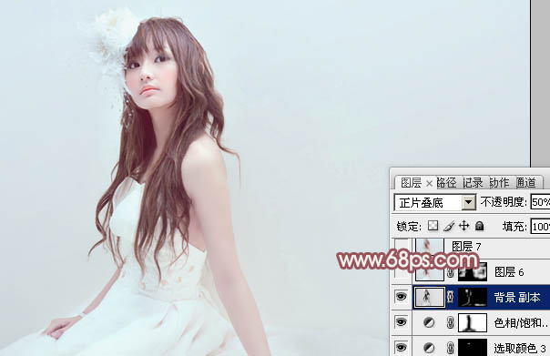 10、新建一个图层,盖印图层,混合模式改为“正片叠底”,不透明度改为:50%。按住Alt键添加图层蒙版,用白色画笔把需要加深的部分擦出来,效果如下图。