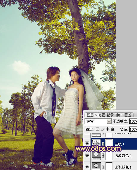 Photoshop调出树林人物图片流行的黄褐色(4)