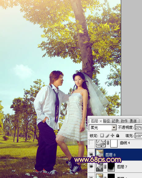 Photoshop调出树林人物图片流行的黄褐色(6)