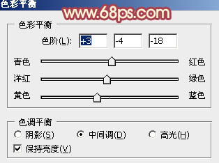5、创建色彩平衡调整图层,对阴影、中间调、高光进行调整,参数设置如图9 - 11,效果如图12。这一步给图片增加橙黄色。