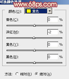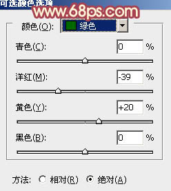 11、创建可选颜色调整图层,对黄,绿进行调整,参数设置如图24,25,效果如图26。这一步给图片增加淡绿色。
