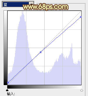 2、创建曲线调整图层,对蓝色进行调整,参数设置如图5,效果如图6。这一步给图片的高光部分增加一些淡黄色。