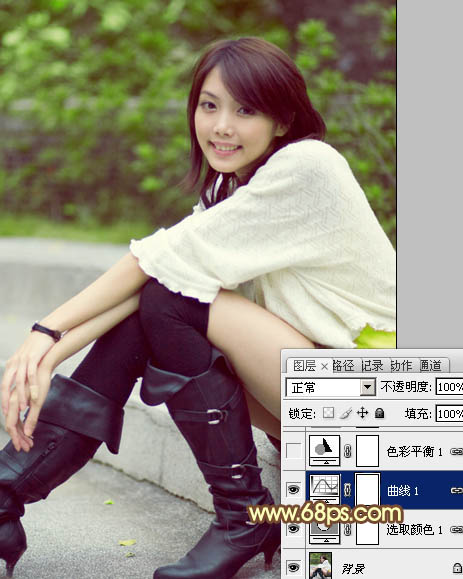 Photoshop给石阶上的美女图片增加淡淡的甜美色(3)