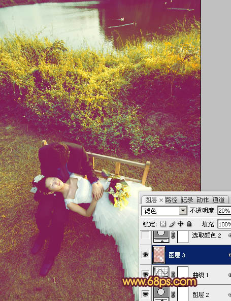 Photoshop给塘边情侣图片增加温暖的霞光色(4)