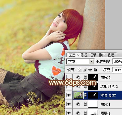 Photoshop调出草地美女图片甜美的粉黄色(6)