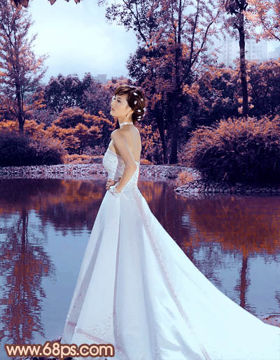 Photoshop打造古典暗调橙红色外景婚片(8)