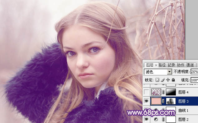 Photoshop给外景人物图片加上朦胧的淡紫色(4)