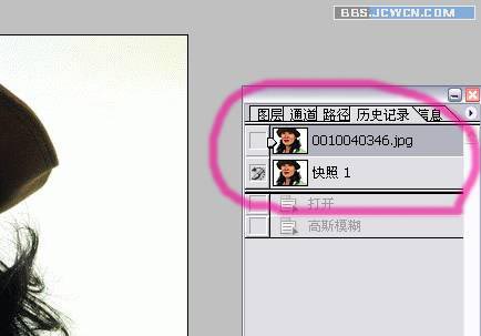 2.选择历史记录版面,把画笔作用在快照层,原图显示。如图: