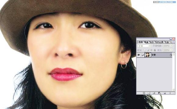 9.选择画笔用自己喜欢的红色,在脸上均匀涂抹(在空白层)好了后根据需要在脸的边部分用橡皮(调好参数)轻擦,使脸上的红色自然一点。大功告成!大家也试试,是不是很方便?如果下点功夫,效果会更好,呵呵!