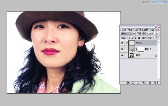 8.这个时候我们观察图片,发现皮肤颜色又显得太黄,所以我们用曲线把黄色调淡点。然后复制一个空白层,混合模式为颜色。
