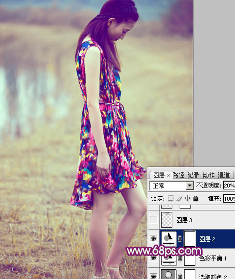 Photoshop给草地美女图片加上流行的暗调暖色(6)