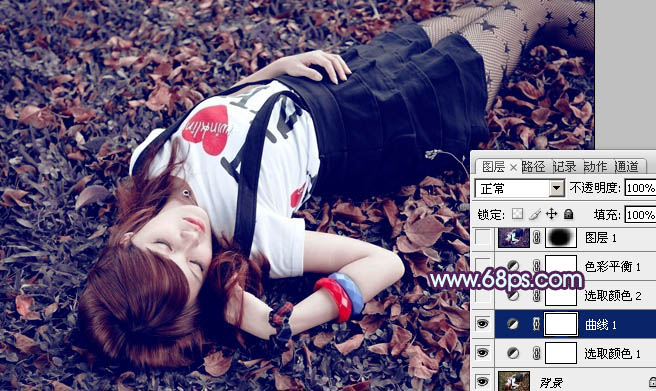 Photoshop调出草地美女图片经典暗调蓝红色(3)