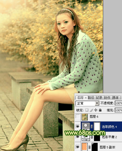 Photoshop调出外景美女图片温暖的橙绿色(8)