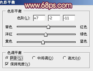 5、创建色彩平衡调整图层,对阴影,高光进行调整,参数设置如图13,14,效果如图15。这一步增加暗部及高光部分的橙黄色。