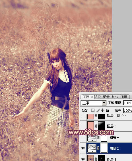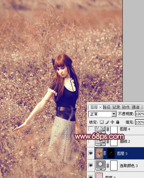 Photoshop调出荒野人物图片柔美的粉红色(7)