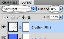 9、设置混合模式为“柔光”,不透明度为:80%,如下图。