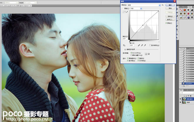 8、调整曲线,从中间部分向上拉起,略微提亮画面。