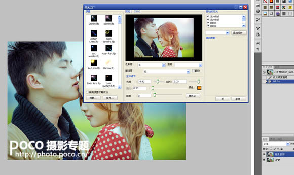 10、用Knoll Light Factory3.0(也叫“灯光工厂”)插件添加阳光温暖效果,选择好一个光线样式。