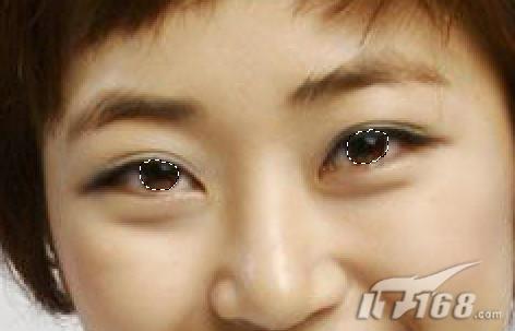 9、在图层面板中锁定透明区域按钮,在选择工具箱中的画笔工具在眼睛高光的边缘描绘上轻微的蓝色,按Ctrl+D取消选区,最终效果如图07所示。