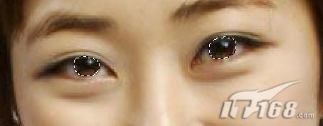 5、单击工具箱左下方的“以标准模式编辑”按钮,回到普通编辑状态,眼球部位将自动生成选区,效果如图04所示。