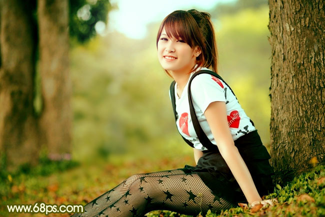 黄绿色也是比较常用的颜色,比较适合夏季外景图片。调色过程也比较简单,只需要把背景部分主色调成黄绿色,再把人物部分稍微调红润一点即可。