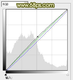 2、创建曲线调整图层,对RGB,蓝进行微调,参数设置如图6,效果如图7。这一步把图片整体调亮,再增加高光部分的黄色。