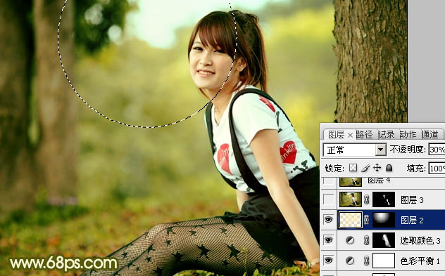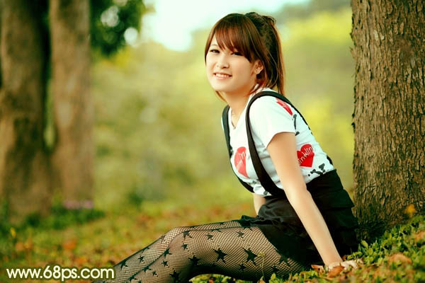 Photoshop调出树林美女图片甜美的黄绿色(6)
