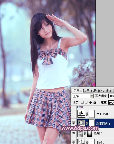 Photoshop调出树林美女图片甜美的蓝紫色(7)