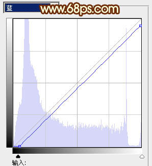 7、在图层的最上面创建曲线调整图层,对蓝色进行调整,参数设置如图13,效果如图14。这一步增加图片高光部分的淡黄色。