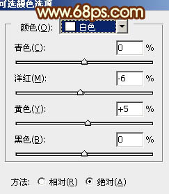 9、调出人物选区,创建可选颜色调整图层,对红、黄、白进行调整,参数设置如图19 - 21,效果如图22。这一步再加强人物肤色。