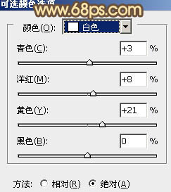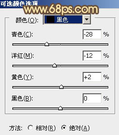 1、打开原图素材,创建可选颜色调整图层,对红、黄、绿、白、黑进行调整,参数设置如图1 - 5,确定后用透明度较低的黑色画笔把人物脸部擦出来,效果如图6。这一步把整体颜色转为红褐色。
