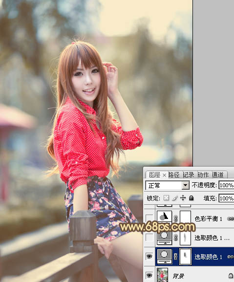 Photoshop打造柔和的暖调红褐色外景美女图片(2)