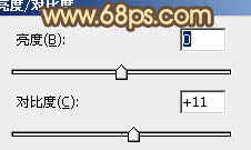 5、创建亮度/对比度调整图层,适当加大图片的对比度,参数设置如图16,确定后把蒙版添加黑色,再用白色画笔把人物脸部擦出来,适当降低图层不透明度,效果如图17。这一步增加人物脸部肤色质感。