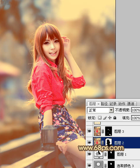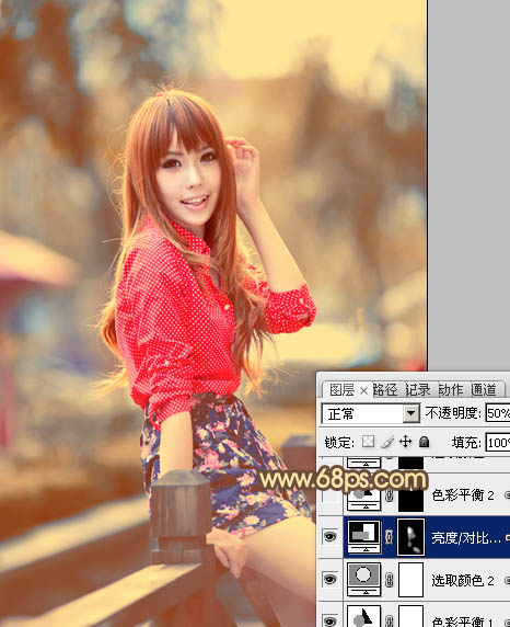 Photoshop打造柔和的暖调红褐色外景美女图片(5)
